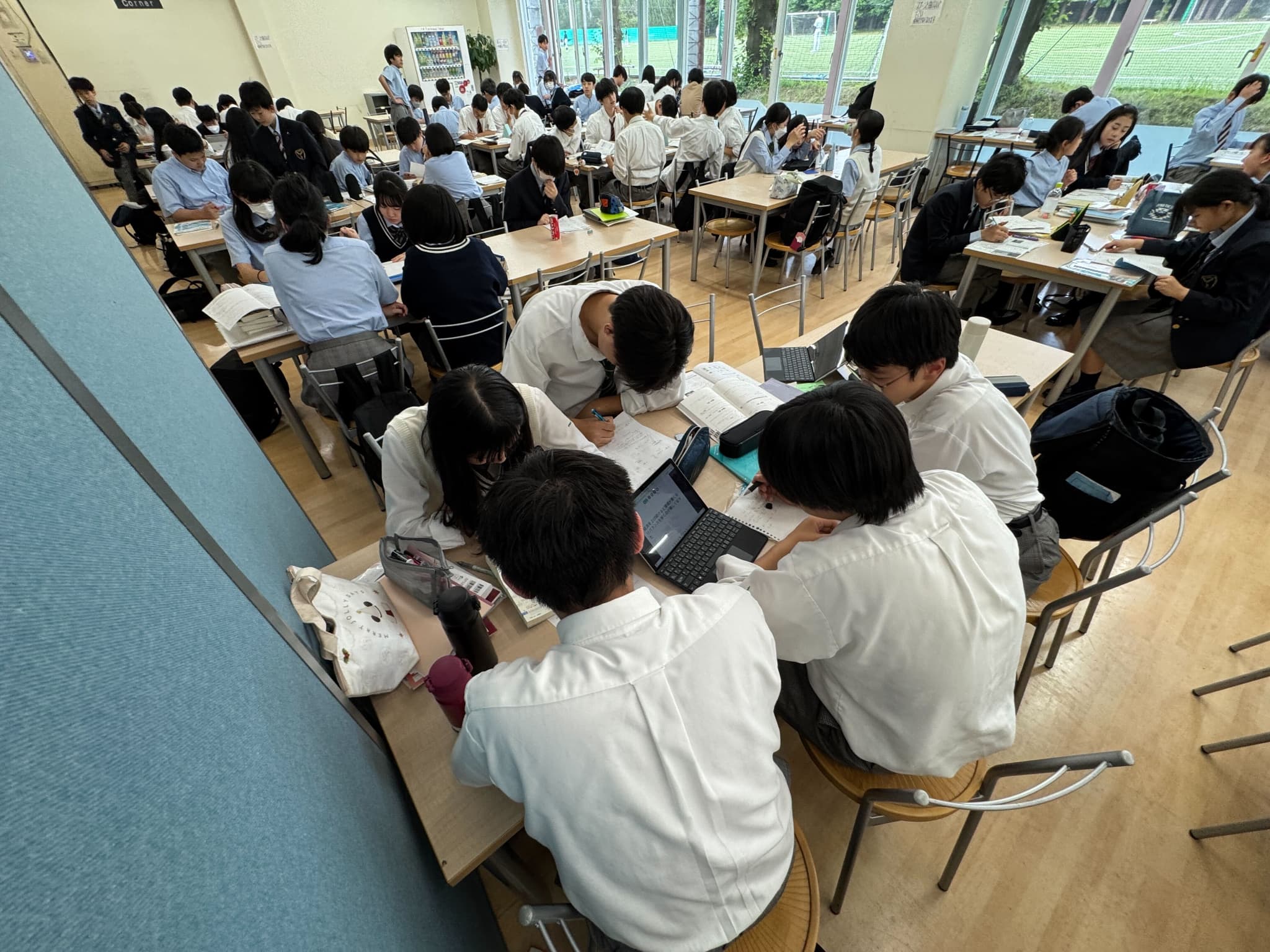 メンターは東京大学や一橋大学、東京学芸大学などの大学生・大学院生であり、理系志望の多い同校のニーズに合わせて理系学生を充実させた。彼らは生徒にとって、親しみやすい「兄姉」のような存在だ。大学での研究内容や学生生活の話を聞く機会もあり、生徒たちは将来の自分をイメージし、キャリア形成のロールモデルとしても刺激を受けている。また、学力の高い生徒も発展的学びのために活用するなど、学習進度を問わず「学びのコミュニティ」が形成されている。生徒は解けない問題をメンターに質問するだけでなく、不定期で開催される英検や模試の対策イベントに参加するなど、目的に応じてこの場を活用している。学習空間が特別教室やカフェテリアであることも特徴だ。ワイワイ、ガヤガヤと友人同士での学び合いや、メンターへの質問・日々の宿題チェック、あるいは参考書での自主学習など、生徒が学び方を選択できる柔軟性がある。カフェテリアの入口には売店や自販機があり、立ち寄った生徒が勉強している仲間の姿を見ることで、学習意識への刺激も自然に生まれている。また、カフェテリアの入退室通知が保護者に届き、わが子の学習参加や居場所が把握でき安心感があるとの声も寄せられている。
