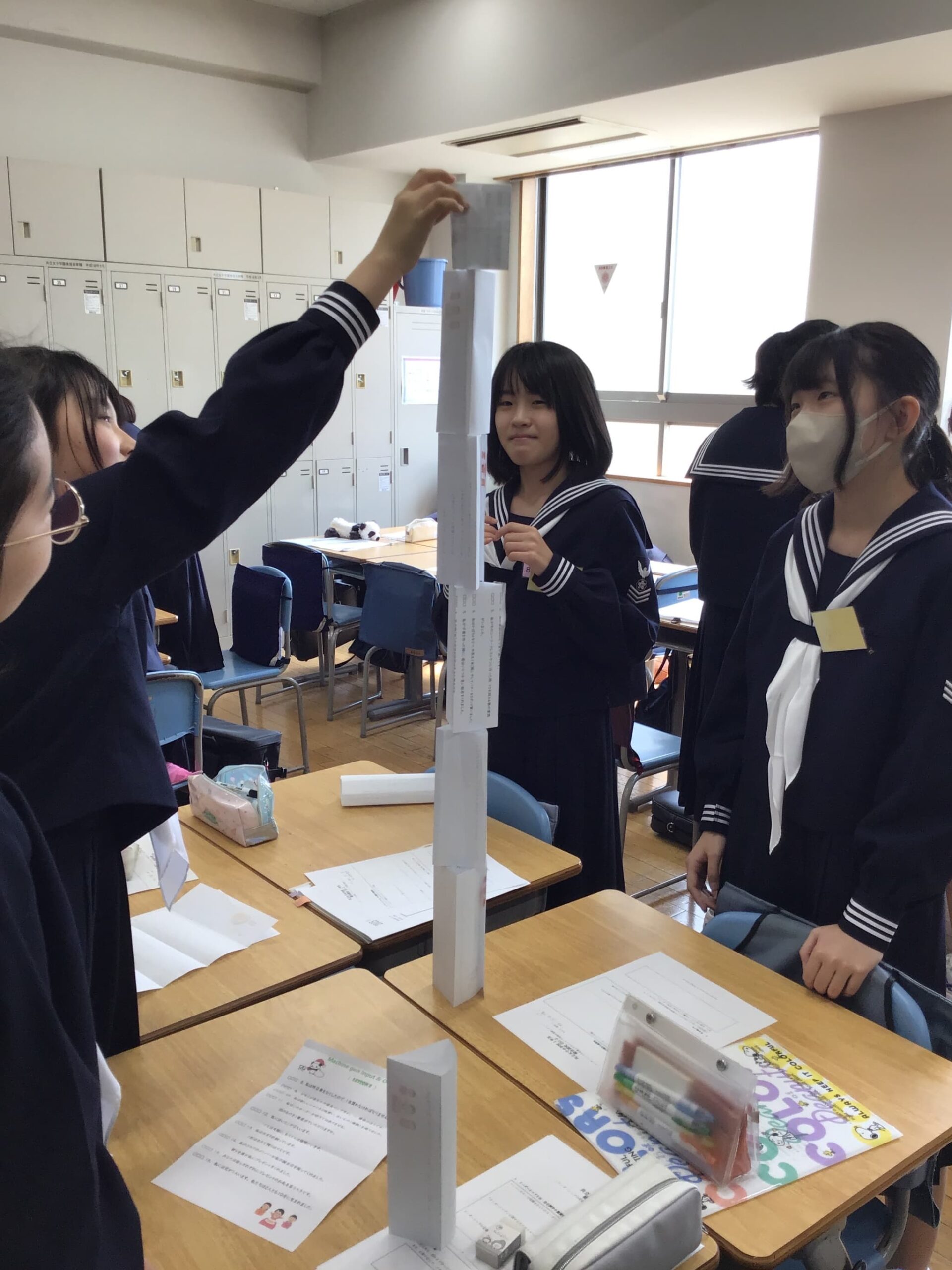 カリキュラムは入学直後からスタート。導入として、まだ出会って間もない生徒同士がチームでペーパータワーなどのワークに取り組む。皆で目的を共有し、各自の得意を見極めながら協力するプロセスそのものが学びとなる。活動後には振り返りを行い、自分が担った役割や他者の秀でた部分、どのような声がけやフィードバックがチームに影響したかなどを言語化。生徒は集団の中での自分の役割や強みを、実感を伴いながら気づく。